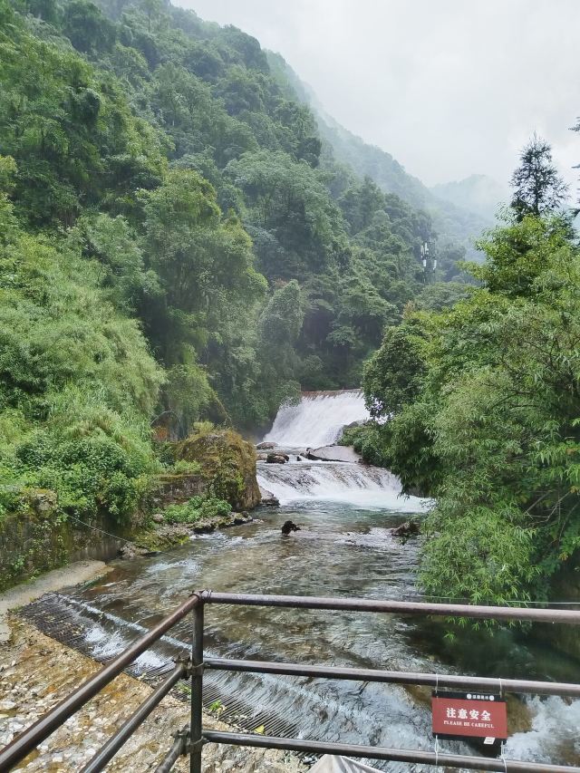 循阶而下,入深林之间,风吹树叶沙沙作响,鸟鸣山涧间。时而溪流湍急,如细丝垂帘;时而宁静悠长,如镜面平展。沿途所见,皆为美景。