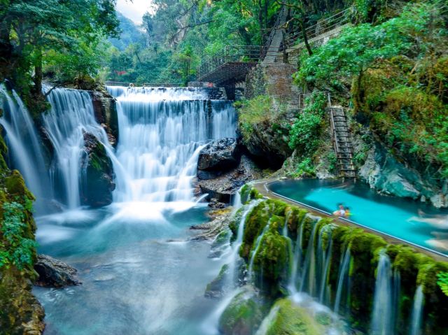 5分 超棒螺髻九十九里温泉门口的几个池子在小红薯和某音上已经被安利太多次了,山间的雾霭、悬崖下的温泉池、山腰上的热气腾腾都令人印象深刻,但我们这次无意中发现了一个很少被人注意到的瀑布游泳池,绝对可以让游泳爱好者大呼过瘾。