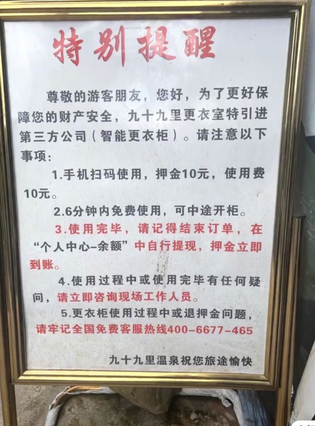 置物柜:10押金:10押金在结束用柜后需要自己提现更衣室语音广播也有提醒,山顶上的泡池人都是比较多的,泳池水位1.4m+,水温有点低,游着泳不冷 ,大泳池是很容易被忽略的地方其实就是在我们进景区往更衣室走会路过的一个洞口溶洞里水温略高一点大泳池水位1.4m 美中不足之处就是景区基础配套设施不完善,更衣淋浴区非常简陋,期望值不要太高哈(淋浴区不能使用沐浴露浴袍每人一件,风筒在更衣区楼下,简易的桌子上放着 插板插着几个风筒公厕在更衣区楼对面(只有这1个)