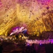 4分 满意被誉为“海内一绝”的地下长河游览全程2500米,面积25000多平方米,分涌雪洞、时间隧道、玉露洞三段,是溶洞发育不同时期的典型,各具形态、各有特色。涌雪洞中一条长逾千米地下暗河贯穿始终,源头至今还未探明,洞内气温常年保持18度,冬暖夏凉,舟行其中,宛若置身仙境。