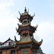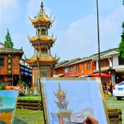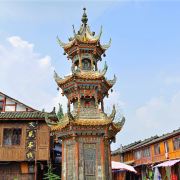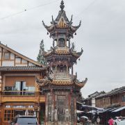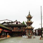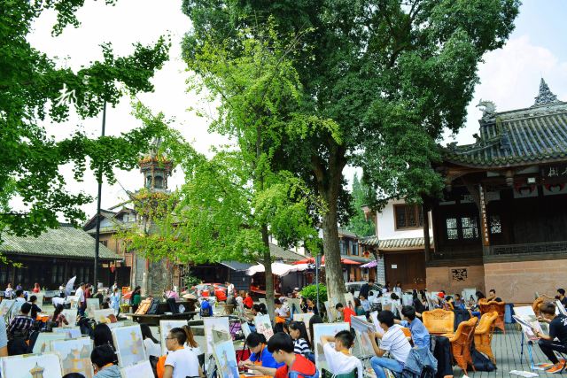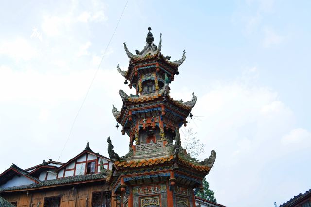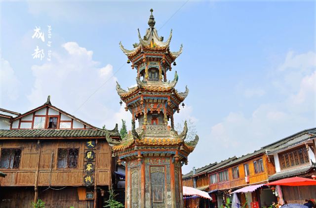 西来历史悠久,距今已有1700多年的历史。他曾经是临溪县县治所在地,古镇的核心景区是老街,这是一条有近百年历史的老街,簸箕街、烟巷子、水巷子、花龙门子、亭子巷纵横交错,构成了1200米的长街和近700米的小巷。这里保存着许多明清建筑,民居是典型的川西特色,古朴典雅。在老街中心院坝上,矗立着这座清代建造的文峰塔。文风塔高约20米,分3层,外加宝顶,清道光十三年(1833年)底建成。塔身成六棱状,每一层都是飞檐走角。塔身四周是古典戏曲雕塑,并配有用九曲篆文书写的诗文,此乃世间少有。在老街上,还有两座木结构大戏台,据说是钱姓和刘姓两家人建的,时常二台对唱,各唱各调,各吹各号。街中建有高高的灯杆,灯杆上吊有数十盏以油灯为照明的各式各样红灯笼,戏台至今还在使用。