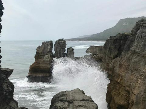 4分 满意One-day west costal drive through Southern Alps n Greymouth just for the amazing natural wonder-Punakaiki Blow Holes and Pancake Rocks where the sea, wind and massive geological change have shaped the landscape creating fascinating stacked limestone rocks n eroded sea creating blowholes.