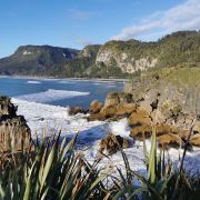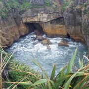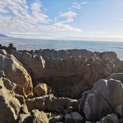 普纳凯基是一个小村庄,这里有处知名的景点,即普纳凯基千层饼岩石与喷水洞,千层饼岩就是像千层饼一样的石头,喷水洞就是能将海水向上喷出几十米高的岩洞。造就这个奇观都要归功于大自然的能力,由于风化和侵蚀作用成就了这番美景。