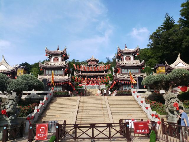 1.建议大家从湄洲大道和朝圣路交叉口的大牌坊进入,一路向上,经过山门,圣旨门,正殿,天后殿,升天楼,到达妈祖石像,这一路所看的多为小巧古老的建筑。