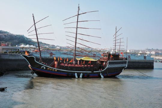 渔舟正剪开镜面。船头供着三炷线香,艄公们将《敕封天后志》里的"化草救商"传说唱成咸涩的渔谣。云絮被风梳作雪浪纹,恍若永乐年间林尧俞献上的《天妃显圣录》散落的残页。鸥鸟掠过桅尖时,总要在妈祖髻边的金凤钗上点一羽白痕。