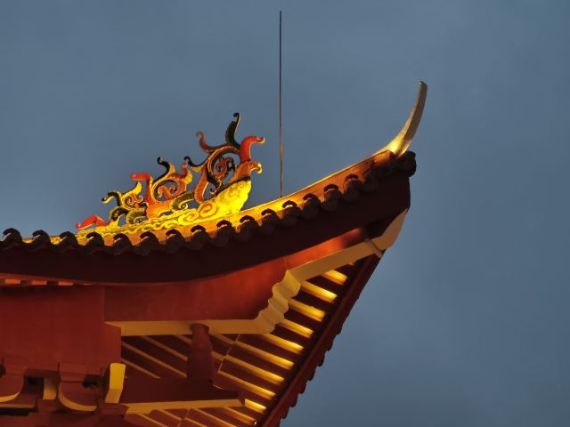 傍晚的妈祖庙会亮起灯光,配合着灯光和将要擦黑的天,你能给我拍出另外一番建筑上的美景。