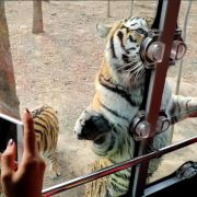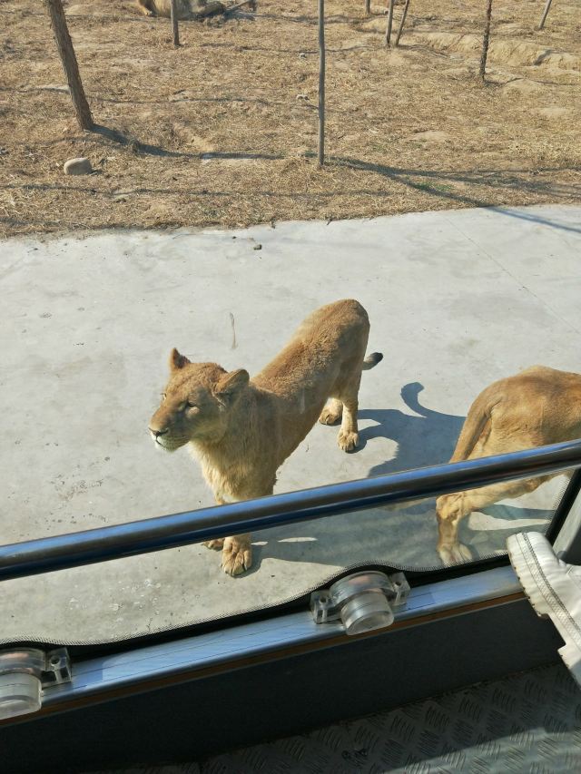 总结:来濮阳东北庄野生动物园给人的感觉是园区特别的大,动物很多,建议游览的线路是入门靠右进园,沿着道路一直走,走到猛兽区,先过桥逛完猛兽区再过桥返回到大象馆向外走,途径长颈鹿馆,河马馆,爬行馆,鹦鹉馆,基本上都在园区西边的一条路上,因为园区太大,有可能我们也没有看完,园区内随时可以看到小谜语等关于动物的知识,带着孩子可以了解丰富的动物知识,和动物亲密接触,非常适合孩子们的亲近自然,认识自然,印象最深刻的是园区的特色猛兽大巴,就在猛兽区内,特别惊险刺激,可能我们平时对这种大型食肉动物也没有那种让人生畏的感觉,但是当你坐上猛兽大巴,老虎趴在车