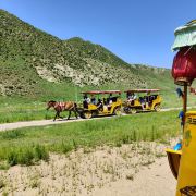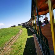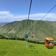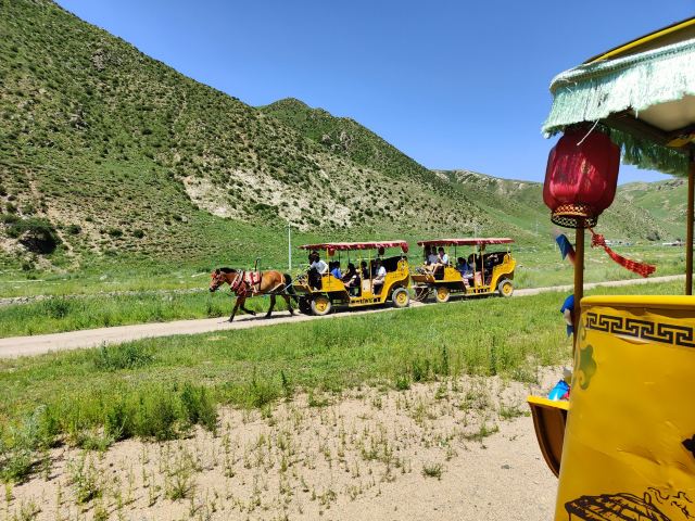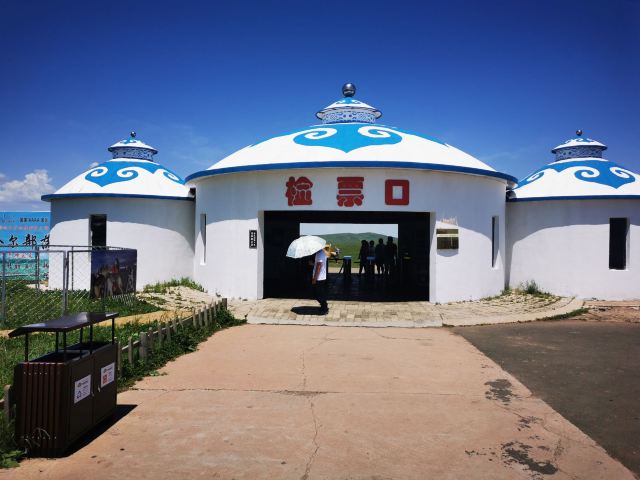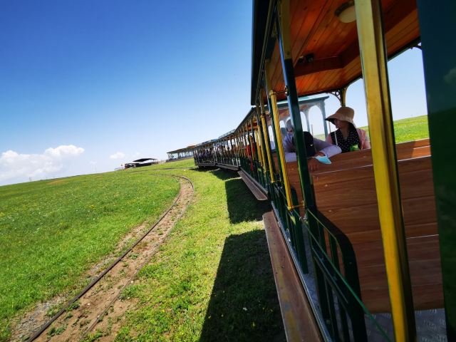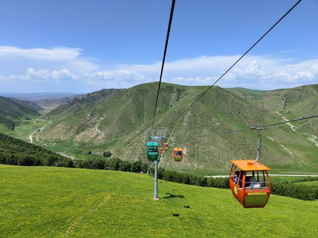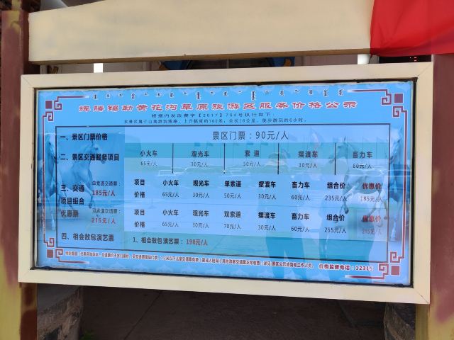 网上看到黄花沟的点评褒贬不一,在鄂尔多斯、希拉慕仁、辉腾希勒三个之间纠结了很久,最终还是选择辉腾希勒的黄花沟,没想到是不虚此行。六月一号,一早从呼市大召寺出发,八点多了辉腾希勒草原,下车发觉衣服穿少了就穿了一件长袖衬衫,当时气温大概只有十几度吧,风又很大,想着这样吹一天非得生病了,犹豫着进了售票大厅,一看有棉衣出租,这下心定了,想着再贵也租了,就去买票了,没想到搞活动,130的门票加保险3元就包括了一次缆车一次马车一次区间电瓶车一次高原小火车再加上北门到南门的摆渡车,还买一送一,老年人是40元加3元保险,买好票租棉衣居然是免费的毒400元押金可以支付宝微信。景区还提供免费热水和雨衣,如果有去的朋友还可以领件雨衣,我们出景区的时候就突然下雨了,感觉这个景区太人性化了,而且景色也很美,同行的四个老人都说好,碰到几个游客去了鄂尔多斯和希拉慕仁都说没有这里风景好,高山,草原(虽然只能远看)、蓝天白云、风车、敖包,牛羊没有只有马、白桦林,黄花(还没有很茂盛),坐缆车、马车、网红的小火车(建议坐在最后一节车厢这样可以拍出最大的弯角)最后的摆渡车是北京吉普213(古董啊)建议大家去黄花沟要从有黄花沟地质博物馆的这个门进,买一送一这个活动就在这个进口搞,另外一个我们出来的时候看就是130一张没活动。