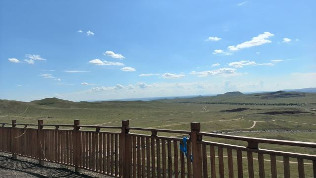 草原风光迷人:除了火山群,乌兰哈达火山草原还拥有广袤的草原风光。绿草如茵,牛羊成群,蓝天白云下,一片宁静祥和的景象。在这里,你可以感受到大自然的广阔与壮美,仿佛置身于一幅生动的油画中。
