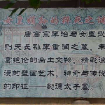 懿德太子墓是唐高宗李治及武则天之孙,唐中宗李显和韦皇后长子李重润之墓。它是距乾陵较近的一座土陪葬墓,也是迄今为止所发掘唐代墓葬中规模大、规格高、属帝王级的陵墓。