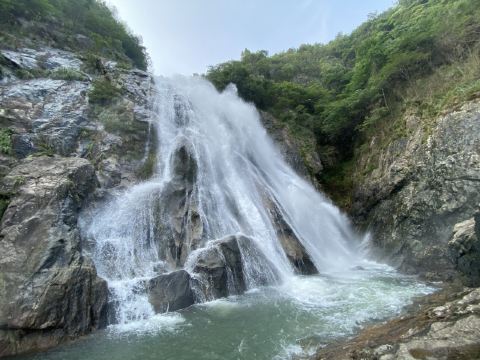 一路沿峡谷溯溪而上,先后有龟蚌相守、雄狮回首、游龙瀑、佛珠潭、通天瀑、虎掌潭、鸳鸯潭、葫芦瀑、龙涎瀑等景点。在峡谷之中,抬头仰望天空,从谷底到左右二岸山峰,高度差达100米至200米之巨。蔚蓝色的天空,一尘不染,仿佛水洗过一般。