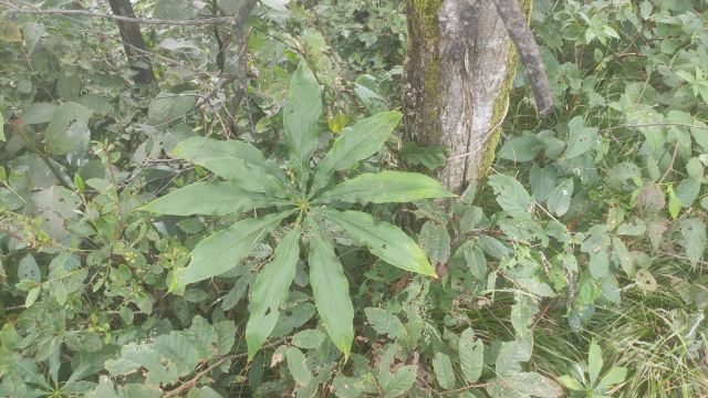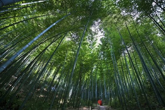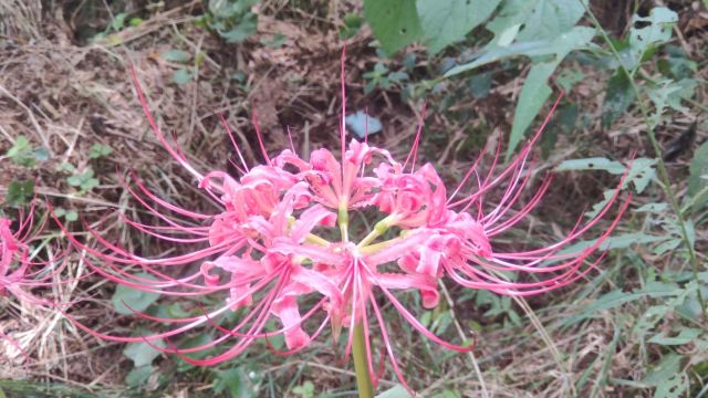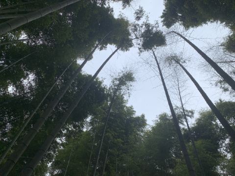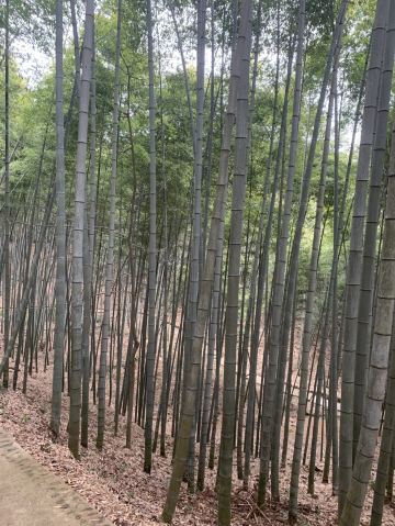 一路前行,穿过一片毛竹林,毛竹林中有高大的枫香与其共生,毛竹高度达15米以上,枫香树高远远大于这个高度,它只能拼命向空中发展以获得阳光才能生存,否则就会被大自然无情淘汰。拼命向空中发展的结果是树干通直、圆满,如同电线杆一般标致,恰似人中美男。