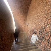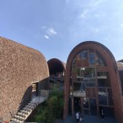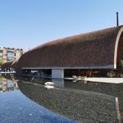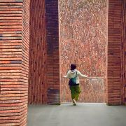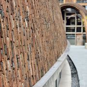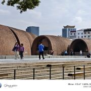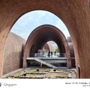 • 博物馆的建筑风格独特,借鉴了景德镇清代独创的蛋形柴窑构造特点,设计成多个多曲面拱体结构,红色砖墙具有古朴的气息。
