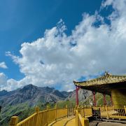 转经长廊:长廊安装直径一米高三米的多个转经筒,转经筒。它不仅象征着佛法的传播,还代表着永无止境、改变命运、心灵的旅程、慈悲与智慧、普渡众生等重要概念。若在山顶转动经轮,所居方圆一带可得吉祥圆满。