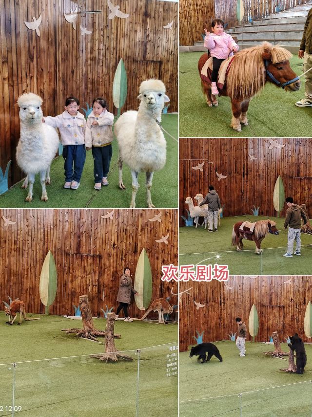 ①欢乐剧场:大门的东南侧(左手边),每天11:00/14:30/16:00表演,是小老虎、小熊、羊驼、袋鼠等动物出场互动,结束后小朋友可入场付费15元跟羊驼和小矮马拍照。