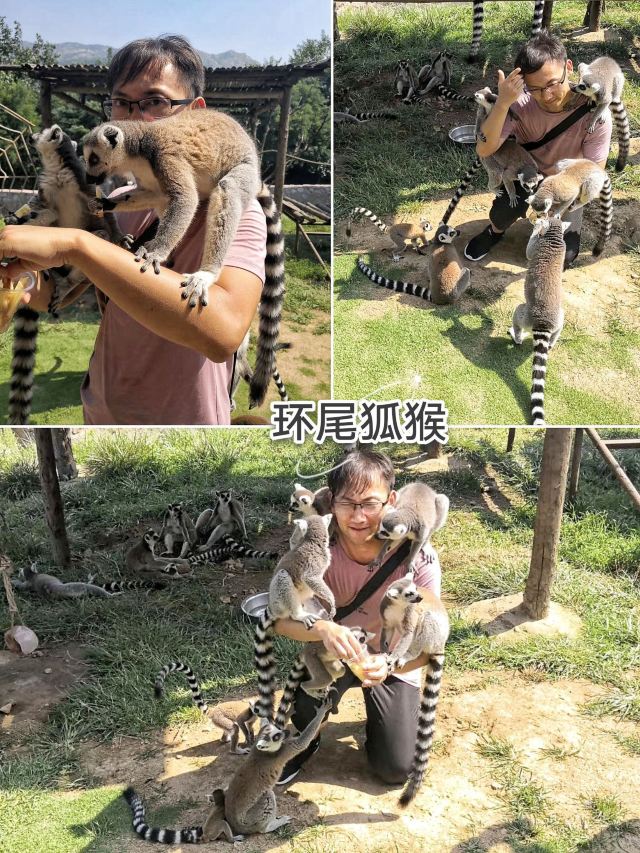 ②明星动物区:有河马、鳄鱼、环尾狐猴(互动性最高,花20元可进入,猴子会爬到人身上讨食,很出片)、长颈鹿等动物,冬季时很多非洲大型食草动物会在室内,气味不太好闻,但也提供了不同的观赏角度。