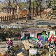 ①非洲动物放养区:有鸵鸟、大羚羊、角马、斑马等动物。