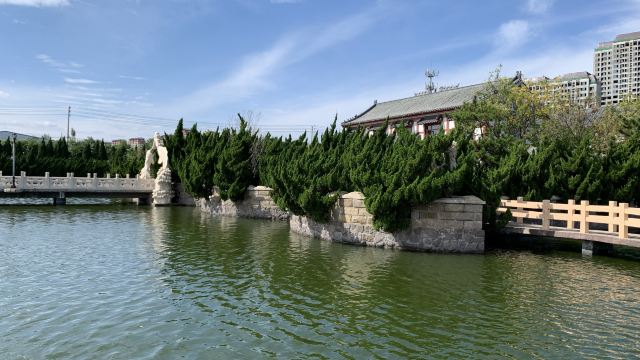 民俗村有郎君庙、盐宗庙、天后宫、王母宫、龙母宫、夫子庙、大成殿、魁星阁、国学讲堂、千手观音殿、大雄宝殿、莲花庵、洪州古商埠、韩家大街、古码头、古船馆、青岛市渔盐民俗文化博物馆、青岛廉政教育基地、商店、酒店、三星级宾馆等文化旅游设施,形成了具有浓烈“易、道、儒、释、渔、盐、耕、读”特色的集旅游度假、园林观光、民间民俗文化展示、宗教文化为一体的综合性民俗文化展区。