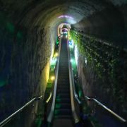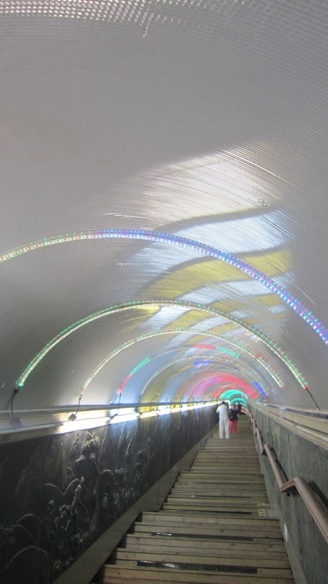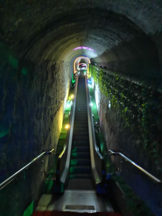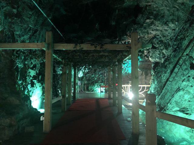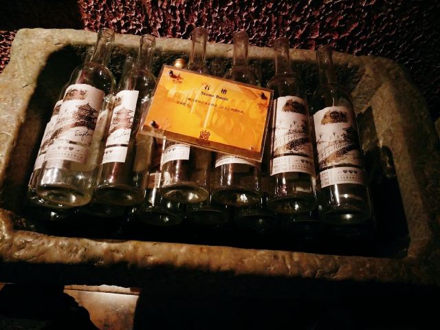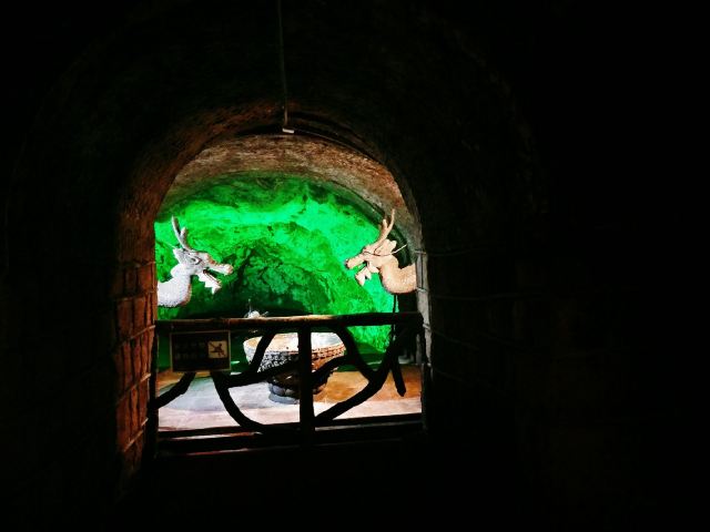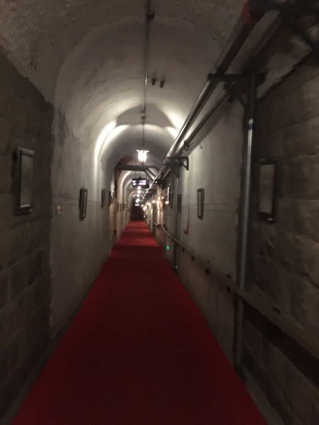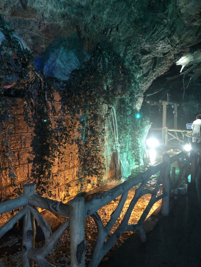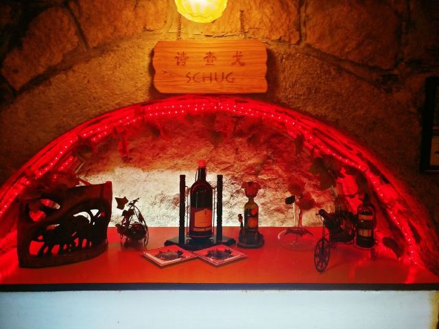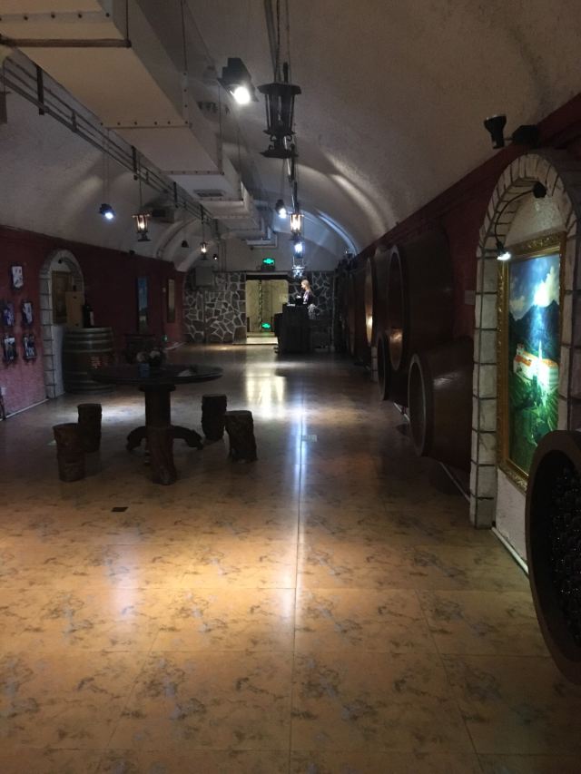 9、之后途经“酒鼻子”(葡萄酒中各种香味体验,种类很多,不过有的气味品种闻不到了)、纪念品超市(在此可免费品尝一小杯红酒,我选的右边那瓶,味道不仅没有苦涩反而很甜)、模拟防空洞(里面像是放空教育展示基地,有生化服和各种国产武器模型)。