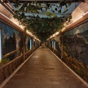 2、第一区域是“天然葡萄园”,里面是葡萄园的塑料模型,尽头是农场工人种植葡萄的塑像以及葡萄标本。主通道两侧墙上贴满葡萄酒的产地和著名酒庄等宏观性基础知识。
