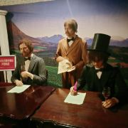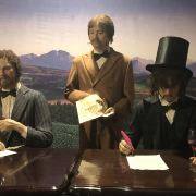 5、第四部分是“历史展馆”,讲述了世界葡萄酒的发展历程,以实物、图片、浮雕、蜡像、雕塑、影视等多种方式表现,并不枯燥,拍照点众多。此馆隔壁的“商务展馆”不开放,从门缝看里面像会议室。