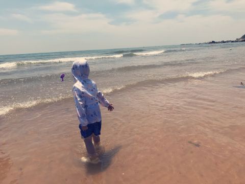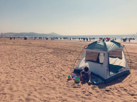 5分 超棒一到金沙滩,就通过一个商业街,里面有卖吃的,卖珍珠的,卖贝壳等等纪念品和游泳设备的,价格不贵,可以先去沙滩玩回来再购买,金沙滩沙子很细,很好玩,旁边有专门负责安全的人,玩的很放心,打算玩一天的朋友可以租一个伞带着桌子椅子,不限时,我们自带的游泳圈,租伞的时候人家免费给泳圈打的气,中午可以点外卖,负责送到沙滩也很方便,有公共卫生间可以换衣服,外面有免费洗脚的地方,不需要另外花钱洗,就是必须要抹防晒霜,我们上午去的时候是阴天,在太阳地下没呆多长时间,还是晒爆了皮,所以防晒特别重要,逛了几个沙滩,觉得金沙滩是比较干净的,也比较安全,尽量不要去野沙滩