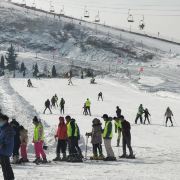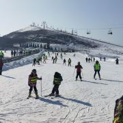 青岛金山滑雪场位于青岛和烟台交接处,座落在风景秀丽的玉皇山脚下,与金山宝塔遥相辉映。滑雪场总占地面积29公顷,可同时容纳1500人滑雪。滑雪场引进了国际先进的造雪、压雪设备,以及1500套国际知名品牌的高级滑雪板。