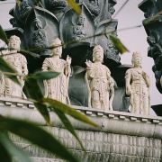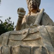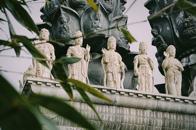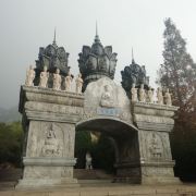 华严寺也称“华严禅院”位于棋盘石游览区~1931年沈鸿烈为华严庵赠匾,改名为华严寺。现在的华严寺是1999年重新修葺的~它三面环山,东襟大海,古朴典雅,气势雄伟~是目前崂山规模较大的佛殿。整个大殿华丽高贵,体现了佛教的风格,也体现了“莲花藏世界”的特征~从山底到达华严寺大约40分钟左右~途中会经过一座塔院~里面有历代住持的圆寂塔~