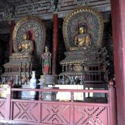 现在的华严寺是1999年重新修葺的,为重檐斗拱歇山式的木制建筑。整个大殿华丽高贵,体现了佛教的风格,也体现了“莲花藏世界”的特征,即华严大千世界。