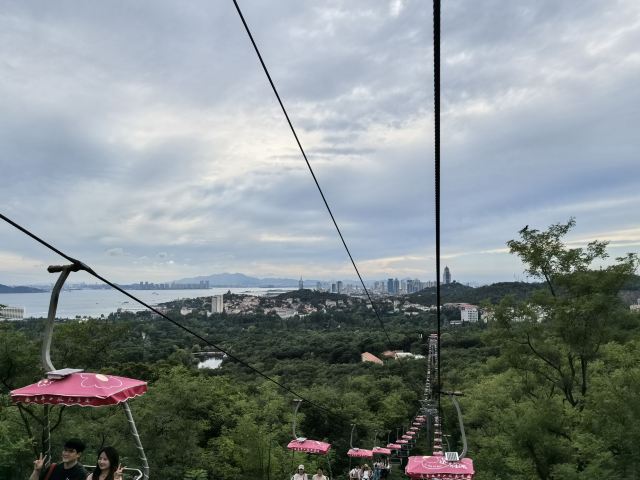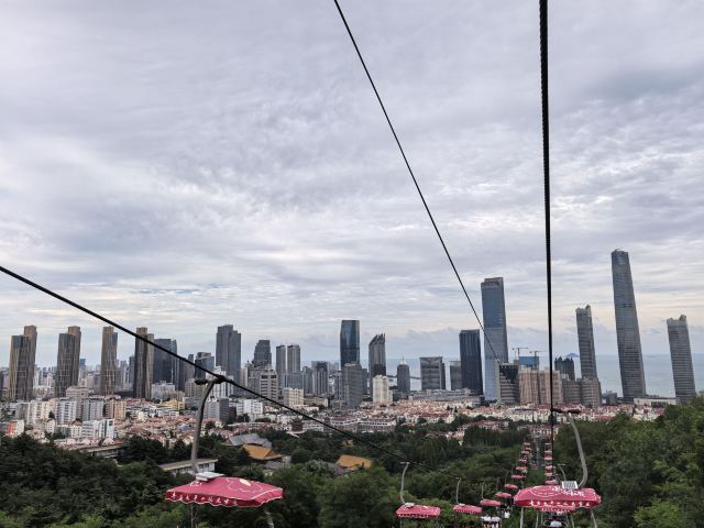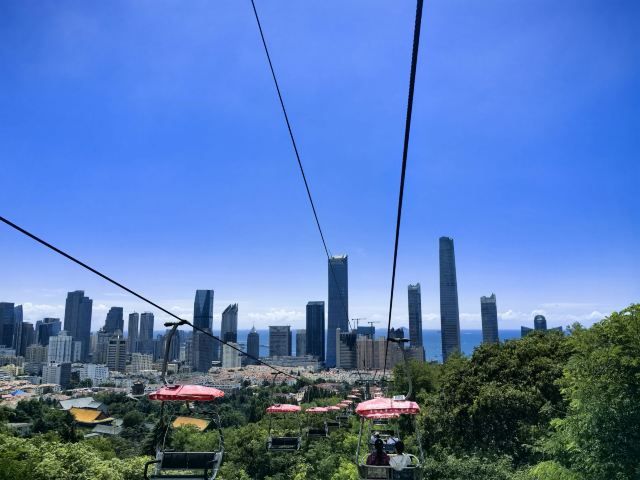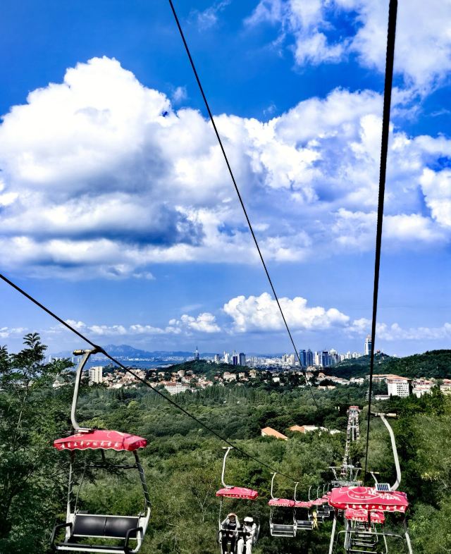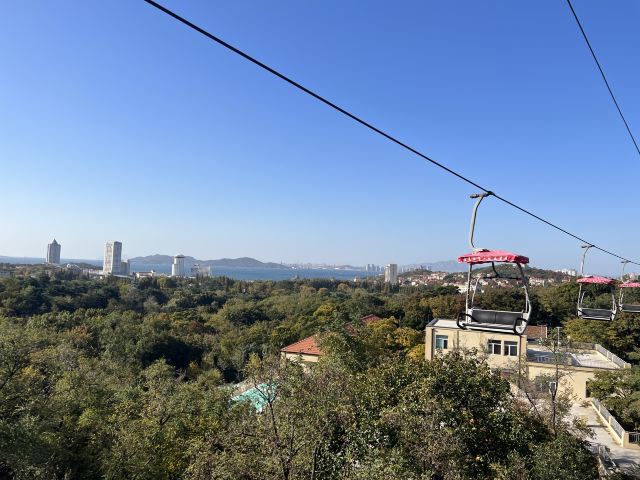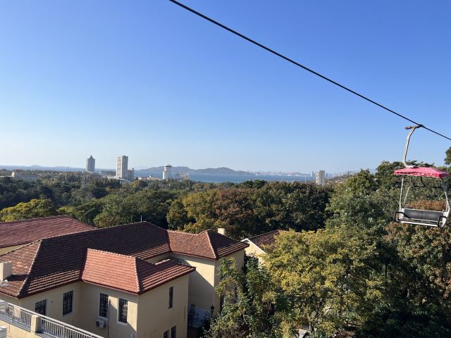 乘坐缆车看不同的风景^_^,超级超级好的体验,在进口处,是索道中间部分,认真看是中间,可以先乘坐去下山,看红瓦,蓝天,大海,很多种颜色的植物,秋天太美啦!游玩一会儿,再坐索道上山欣赏风景!回到索道中间部分,继续坐缆车下山看高楼大厦,看银色的大海,超级震撼!然后在附近游览,玩开心了之后,坐缆车回到索道中间部分!也就是起点!非常值得乘坐,立体鸟瞰如画的风景!有机会再次乘坐!