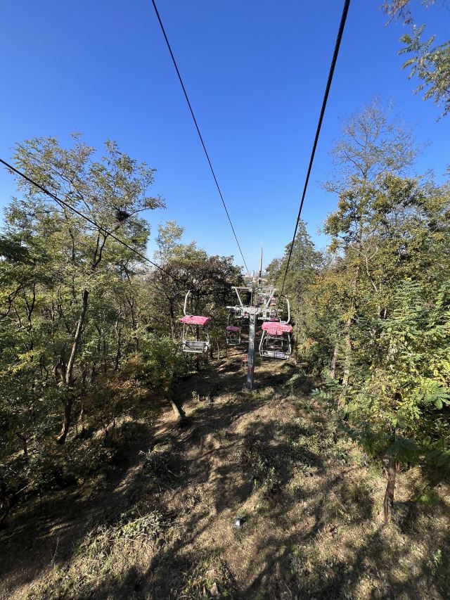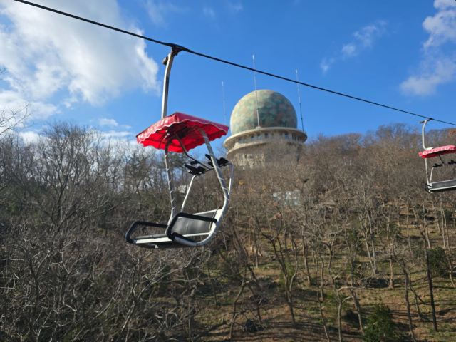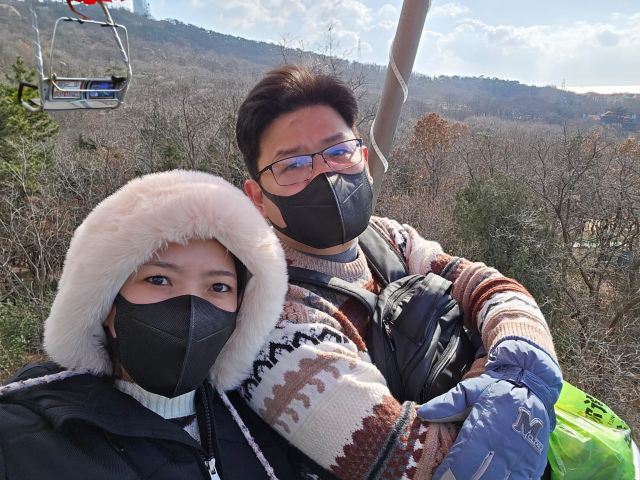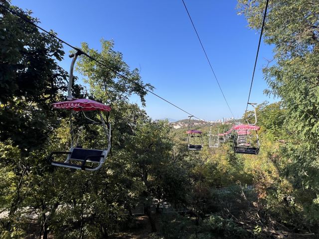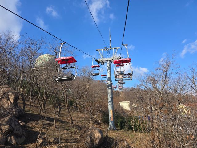 5分 超棒我们于2025年12月25日游览了太平山观光索道,从中山公园站上车。从这里可以俯瞰整个城市和蔚蓝的黄海,全长约1100米。景色令人叹为观止,尤其是我们去的时候正下着雪,增添了许多浪漫的气氛。