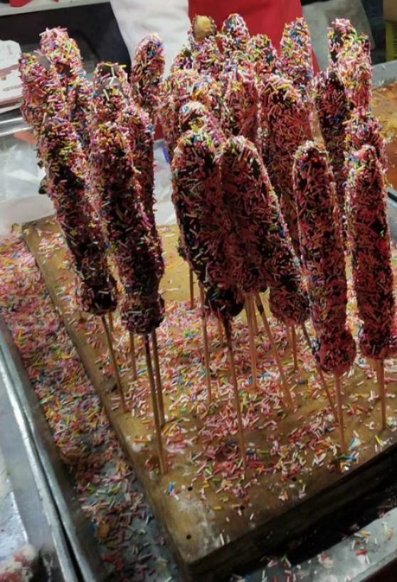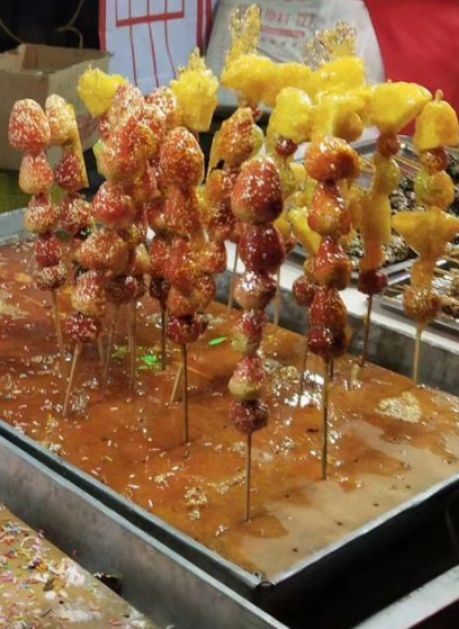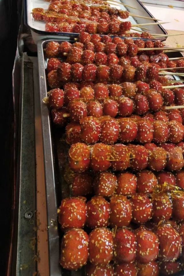 7、海云庵糖球会主会场位于海云庵东侧的市北区公园内,需从仿古天桥过街到杭州路对岸。今年是从农历正月十四至正月十六(2月23日至2月25日),共3天(每年的起始时间、天数可能会有不同),约3横3纵。会场上人潮汹涌,想为美食拍照都挤不进去,都很多摊位是重复的。