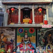 4、东配殿匾额为协天大帝,主祀武财神,文财神居左,龙王爷居右。门外两侧的简易佛供奉是李时珍和月老。