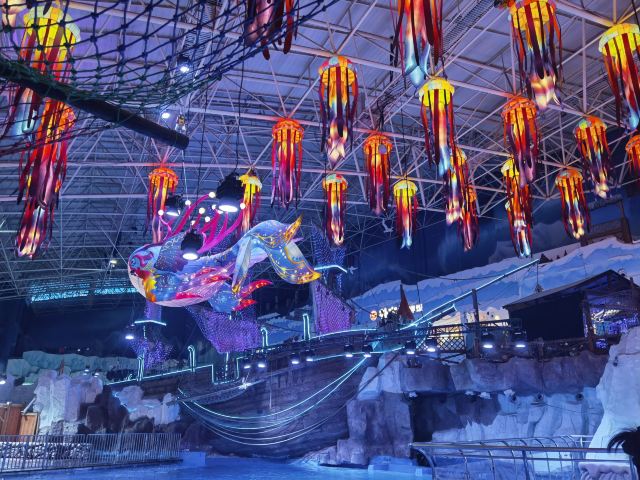 4. 极地传奇-冰雪体验馆:集冰雪艺术与娱乐体验于一体综合性冰雪场馆。实现一年四季畅玩冰雪,第一次采用“冰雪融合”工艺,“蓝冰洞”“海王之座”“七彩冰滑梯”“大雪怪”飘雪互动,在这里可尽情领略冰雪之美,感受与众不同的冰雪魅力。