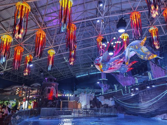3. 深海奇幻-水母秘境:国内首条360°全透明水母隧道,万千水母交织成的奇幻秘境,20+形态各异、色彩斑斓的水母构成的微观海洋世界,深海的“小秘密”等你探寻。