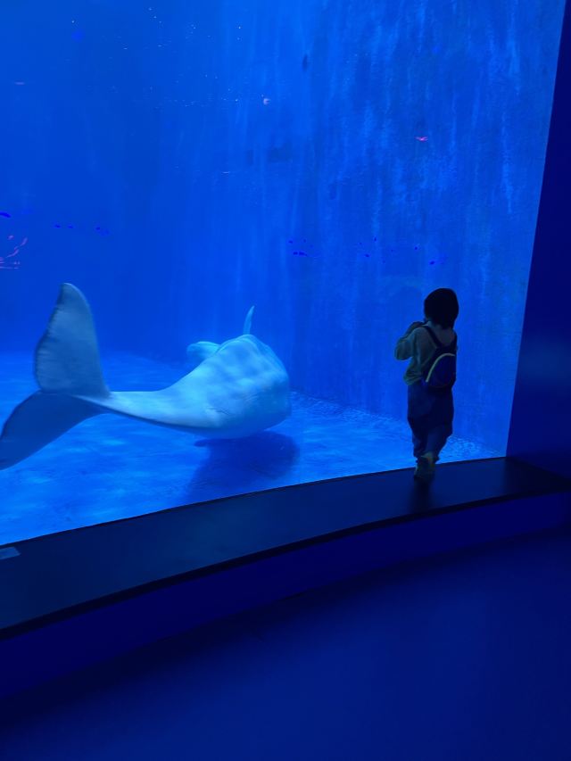 3. 白鲸展缸:波光熠熠下,与浪漫唯美的白鲸相互依偎,白鲸与保育员在水中翩翩起舞,共谱唯美恋歌,美妙的视听盛宴值得被镜头记录。