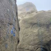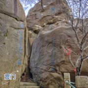 沿途可以看到石刻。过了这处景点就开始了环线。而上灵旗峰有两条路,一条是单行险路,有把手护栏的保护,还是十分安全。此路陡峭,爱冒险者可选择。其次是从巽门右转上行,为一般游客选择的道路。除了登高看海,另一大特色便是奇石。在这里,你可以看到各种形态各异的奇石,如“狗头”状的自然碑。
