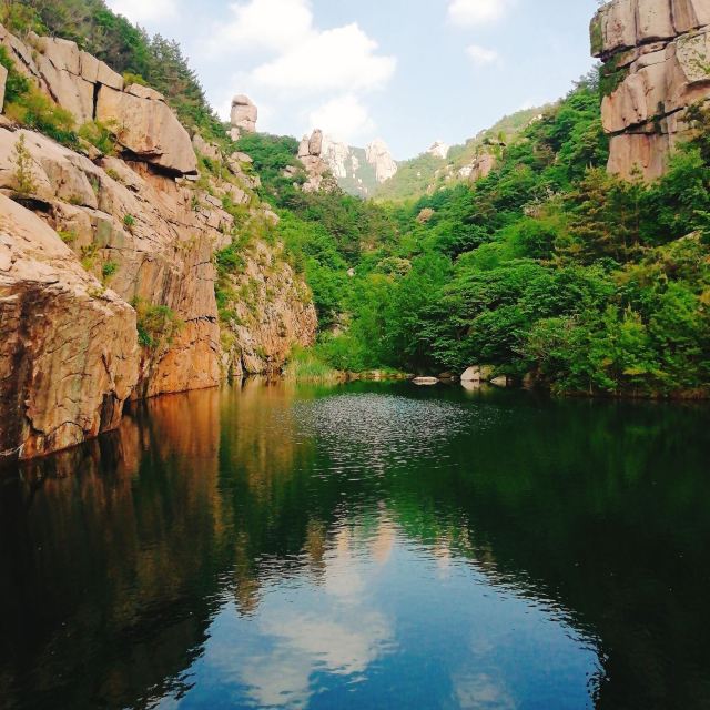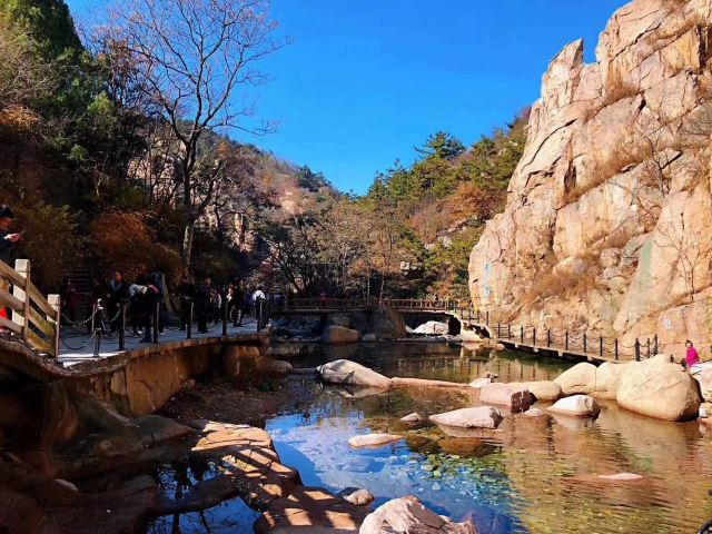 微信小程序崂山九水游览区位于崂山风景区主峰的北部,是崂山风景区中罕见的以赏瀑亲水著称的游览区,也是有名的避暑之地。景区内植被茂密,山谷中遍布溪潭瀑布,山间随处可见惟妙惟肖的巨石,行走于水边栈道,碧绿清澈的潭水令人心旷神怡。
