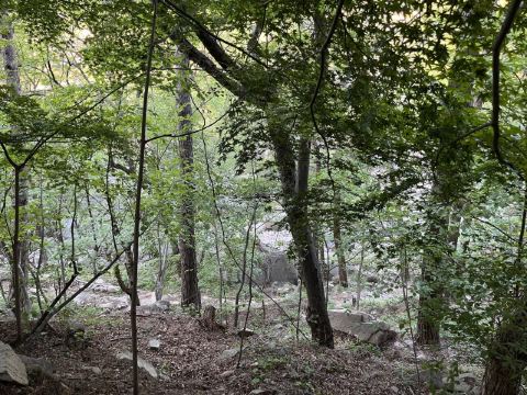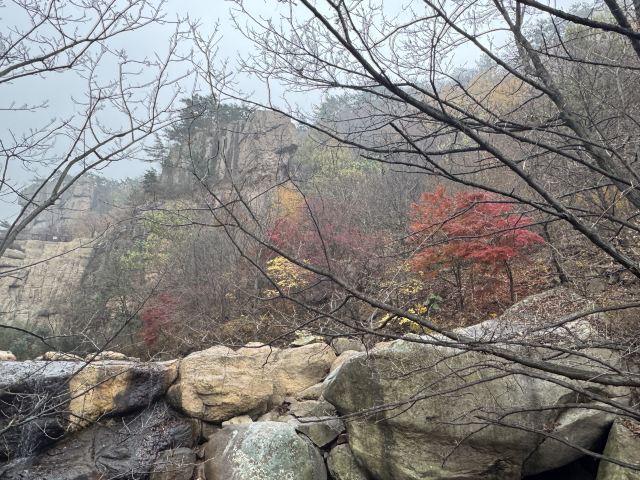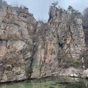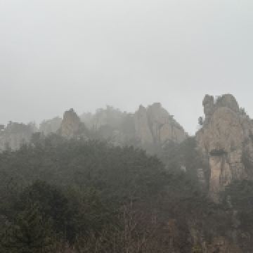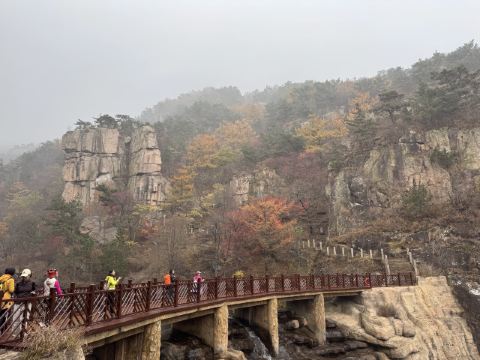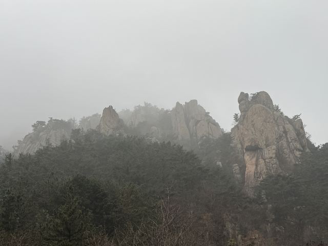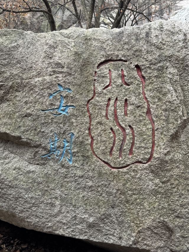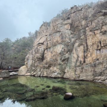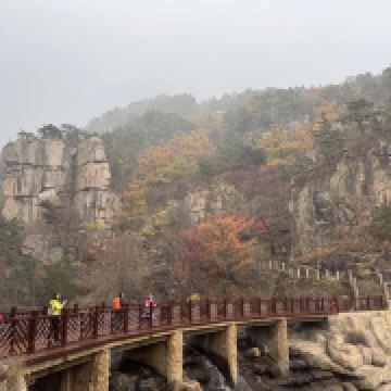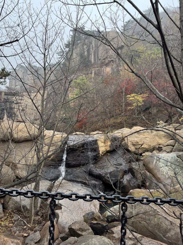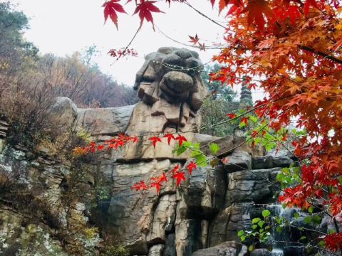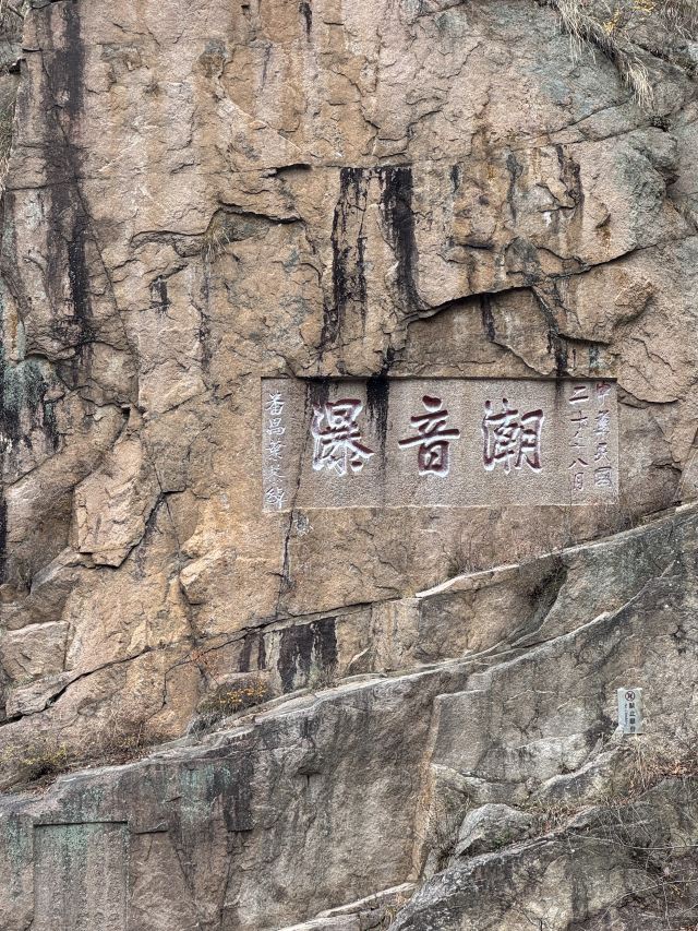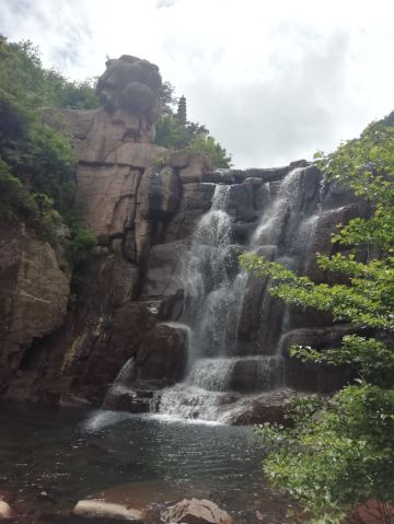 上山的路以石阶为主,从潮音瀑到留韵亭的这段山路比较陡峭,比之前要更耗体力。不过当你登上留韵亭环望四周群山秀色时,你会觉得登上山是值得的。留韵亭是登山路的较高点,是一处海拔670米的观景台,天晴时从这里南望,能清晰地望见巍峨的崂山风景区主峰——崂山巨峰游览区。