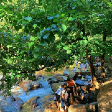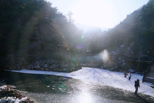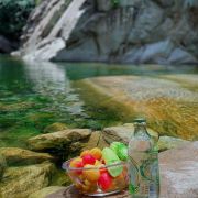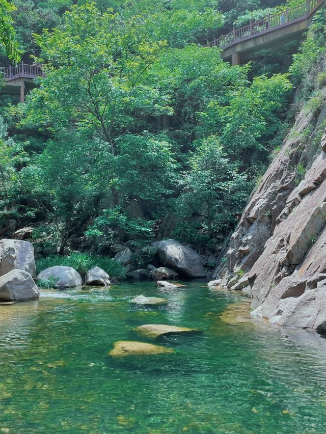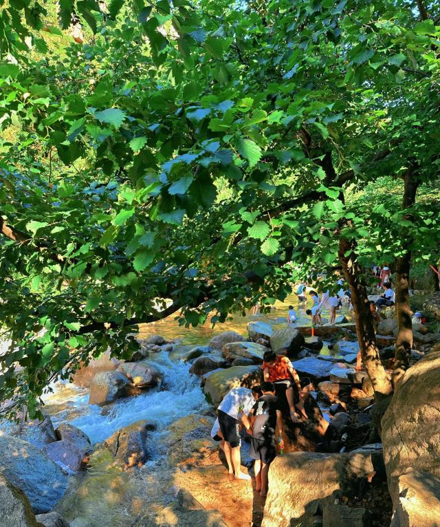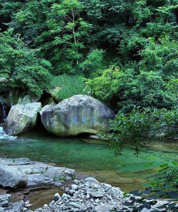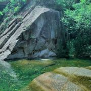 内九水(太和观至潮音瀑)则是整个景区的精华,汇集了众多景点,这一段路也比较好走,途中尤以“九水十八潭”为较大看点。“九水十八潭”是一连串大小不一的水潭,这些水潭清澈见底、碧如翡翠,潭间有巨石散落,如果夏季来此,可以在潭边戏水或在石上踏走,乐趣横生。
