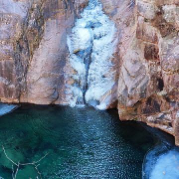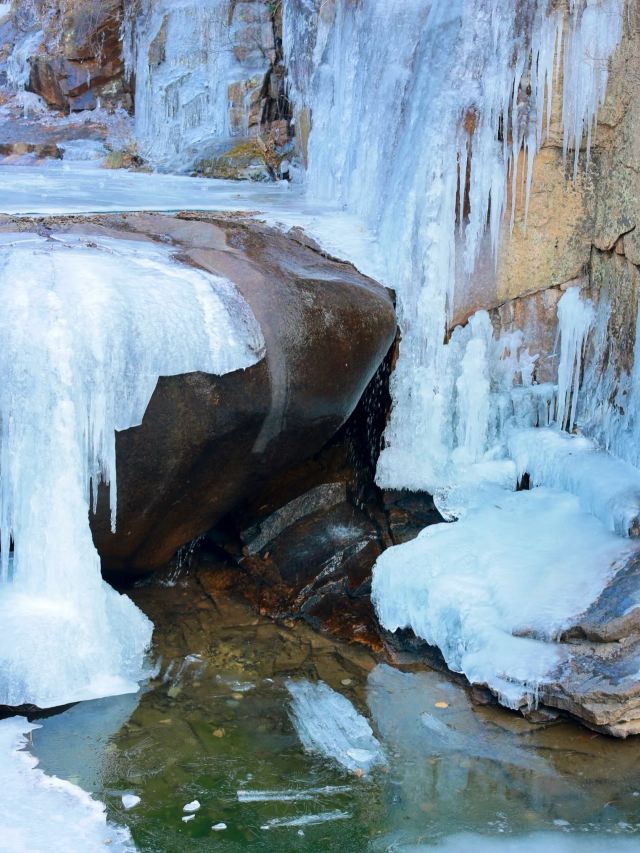在这里一路沿着水流行走,会经过鱼鳞峡、冷翠峡等山间峡谷,还能看到多个巧夺天工的象形石,然后到达潮音瀑,可见一道山泉从峡口飞出,汇成一汪蓝绿色的水潭“靛缸湾”。潮音瀑是内九水的尽头,到了这儿可原路返回,也可继续登山至留韵亭、蔚竹庵,再下行至内四水返回。