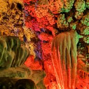 进入景区,就会到达“数生步”,它是一块块的石头架在水上,每块石头都印有日期,可以找一找自己的生日,然后许个愿,很有意思。然后可以去天星洞欣赏五光十色、变幻无穷的奇峰异石,景区内的4根大石柱直抵洞顶,每根石柱都在20米高以上,非常壮观。