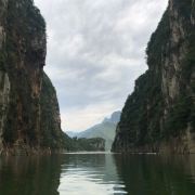 4分 满意六枝牂牁江源于司马迁史记:"夜郎者,临牂牁江,江广百余步,足以行船"。牂牁江位于贵州省六枝特区西部,距离六枝特区中心区67公里,距六盘水市中心50公里,系珠江流域、北盘江水系。我们来到牂牁江游船码头已经是下午1点半了,由于是疫情期间,游客甚少、大的游船不开,只能坐小飞艇,飞艇的价格按时间、景点计算,我们花了400元游玩1小时。牂牁江景区四面崇山峻岭,悬崖陡壁,唯有形似布袋口的打铁关一条路,大有:“一夫当关、万夫莫开”之势,历来都是家兵必争之地。宽宽的牂牁江,从千山万壑中奔腾而过,冲刷而成的奇岩怪石形成一道道独特的风景,雄奇险峻,江水平静清澈,在蓝天白云的映照下,绿水青山融为一体。