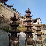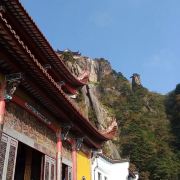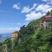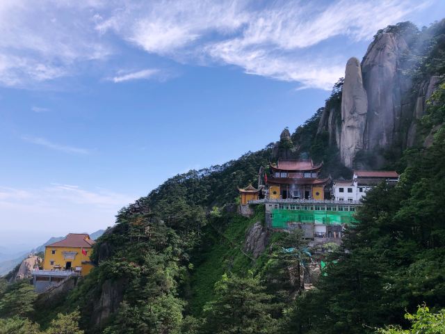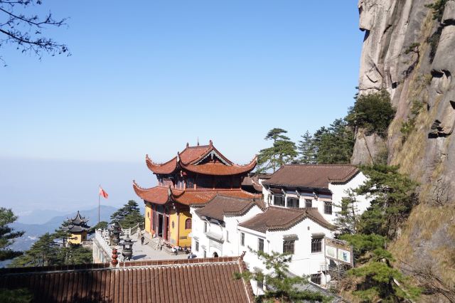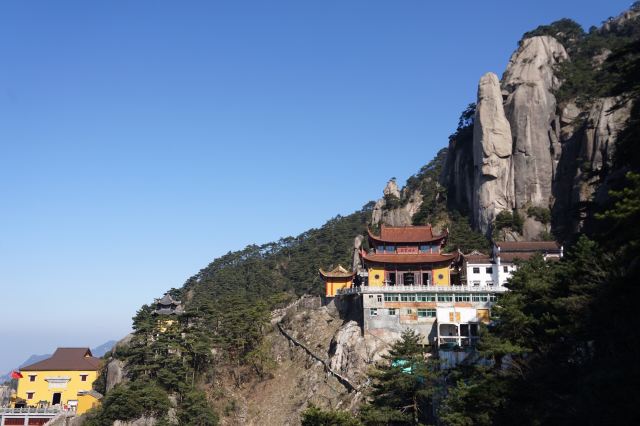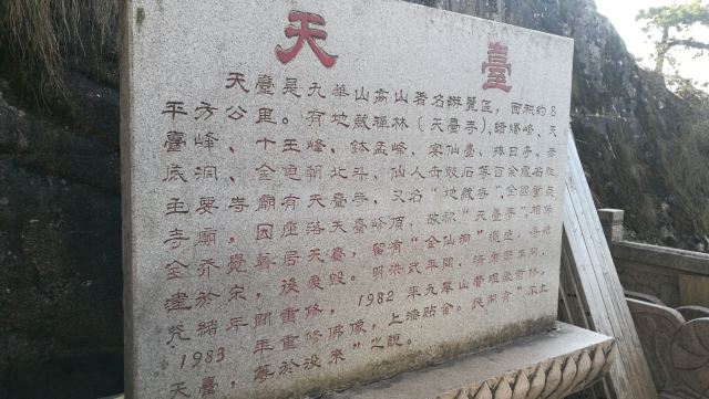 到达天台寺有两种选择:一是全程步行,从九华街附近的通惠寺后,沿山道步行上山,全程步行约3-4小时左右;二是步行与索道结合,先步行到凤凰古松,乘坐索道到古拜经台,再步行向上,走到天台寺,全程大约2小时(根据个人体力而定)。山中指示牌挺多,游客不用担心找不到景点或者迷路。