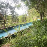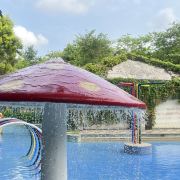 森林里的山泉水泳池,占地1000平方米,水位达2米,采用国际专业的循环水处理、消毒措施等,带给您游泳健体的无忧情怀。池边广场,火山石雕塑而成的玛雅文化图腾柱,古朴神秘,融合音乐、喷泉以及变幻的激光彩灯等,倾情演绎远古与现代完美结合的华彩乐章,独特体验森林嬉水的神秘风情。