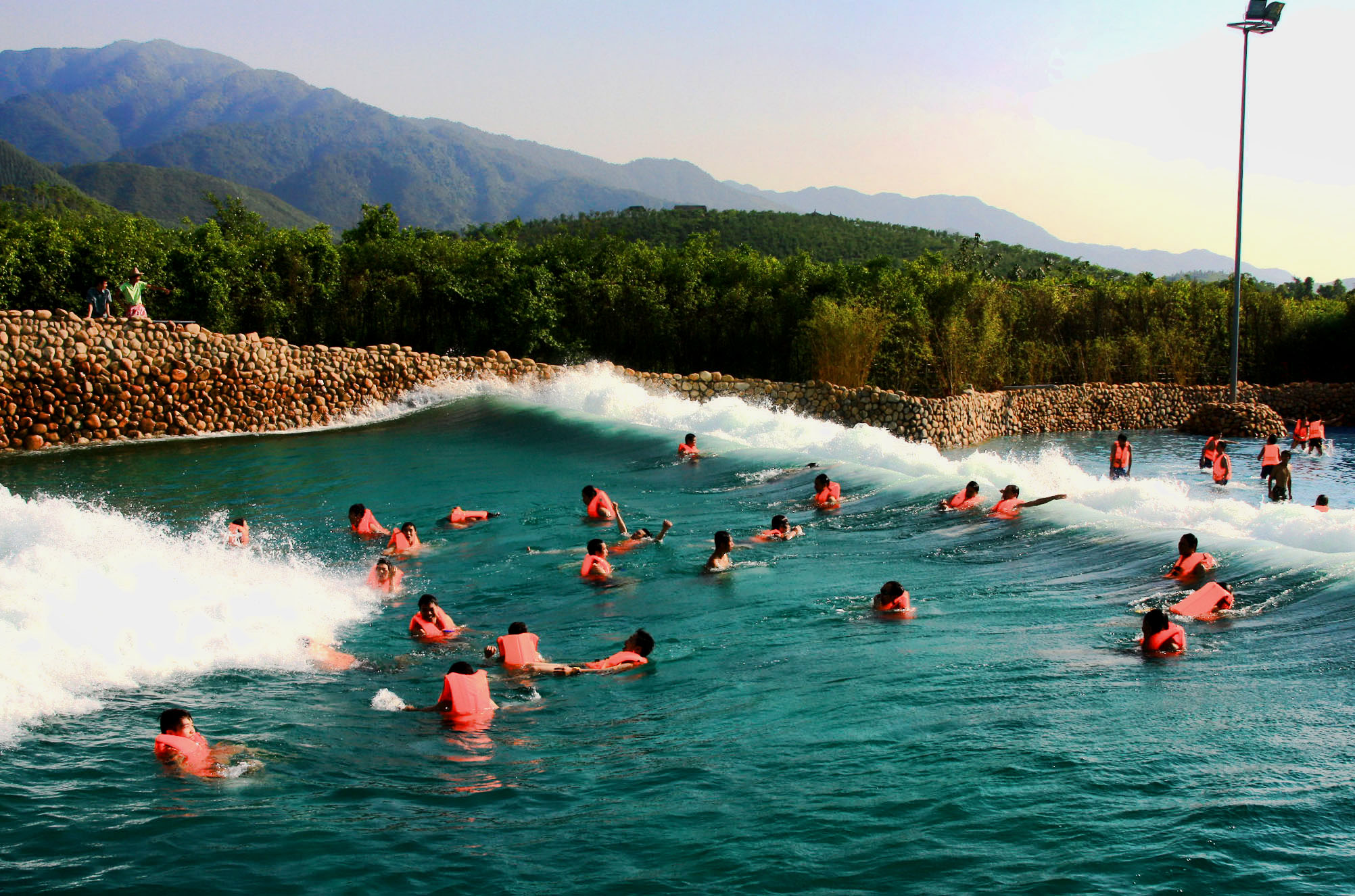 占地近5000平米,是华南地区面积至大、造浪至高的冲浪池,可形成3米高巨浪。3米高海啸冲浪既是对勇气、体力的挑战,也是非常健康时尚的体验,广大游客可以亲身投入海啸冲浪池中“赶大潮”,追潮、搏潮、逐潮、弄潮、戏潮,领略森林夏日浓郁的冰川风情,同时也特别适合一家大小共同体验。