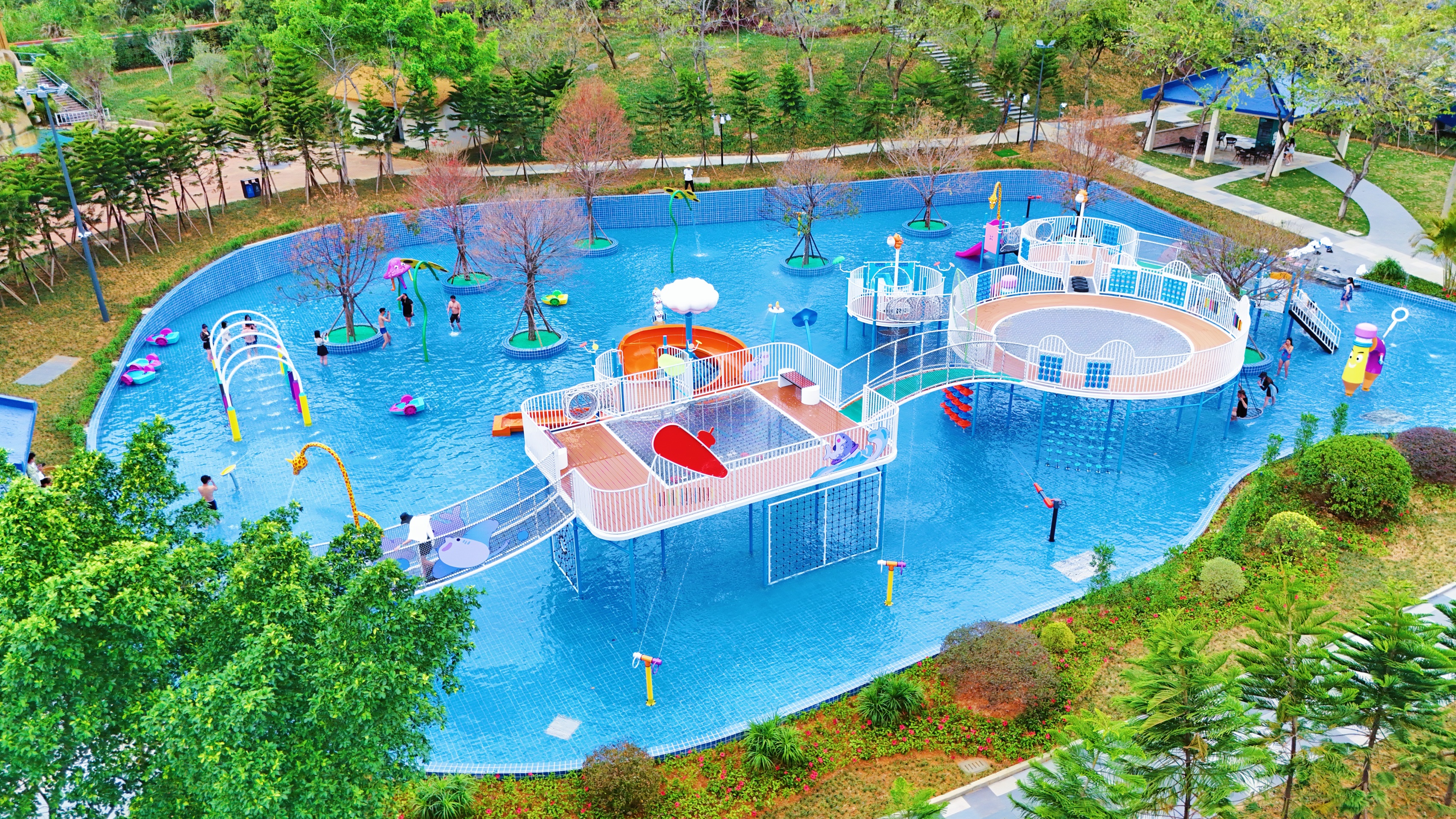 专为儿童设计的“冰心童趣”欢乐岛,水上爬网、水上秋千、水上滑梯、水上穿越等设施丰富多彩,并融合了蘑菇、鲜花、蛇形、卡通、趣味随机等喷水模式,俨然一座水上无动力乐园。
