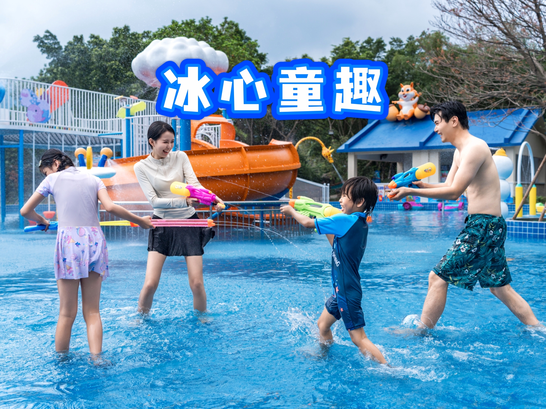 专为儿童精心设计的,娱乐色彩丰富,气势磅礴的大型泼水翻斗,飞速旋转的卡通型小滑梯,几乎垂直下降的直线滑道,玩味逼真的水枪水炮,匪夷所思的喷淋柱、雨蘑菇、喷水单车,富于联想色彩、可以让孩子们锻炼胆识的戏水海盗船,还有惟妙惟俏的各种动物造型等多套适合亲子体验的水上玩具,让儿童释放天性、欢乐无穷。