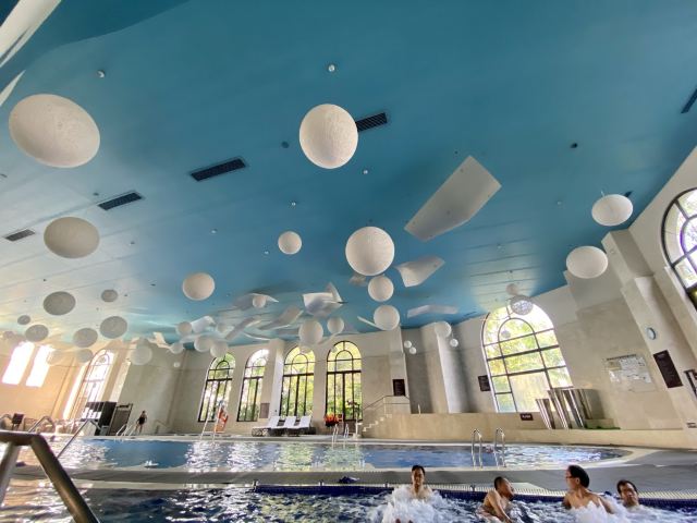 里面有很多特色泡池:药浴、鱼疗、玫瑰池、瀑布池、茶树精油池、茉莉池、薰衣草池、红酒池、甜橙池......还有露天温泉、儿童游乐区,总有一个适合你