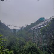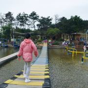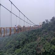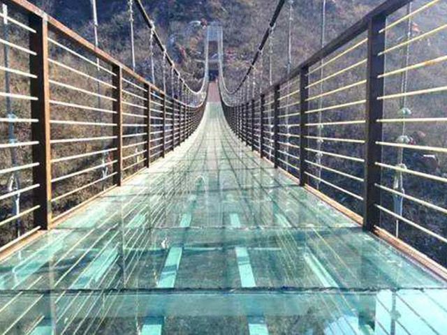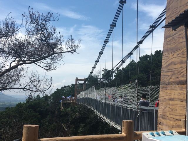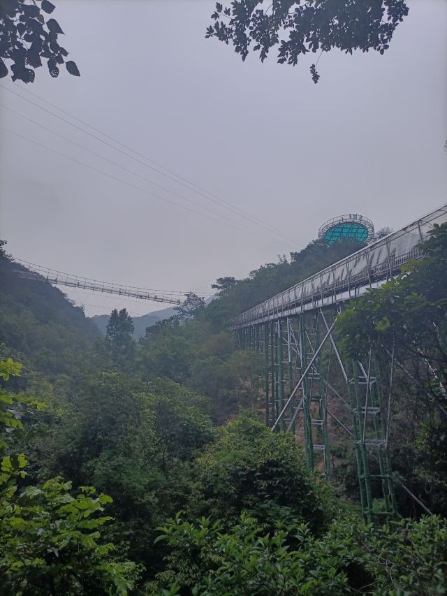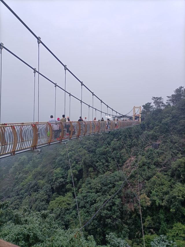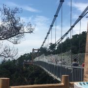 5分 超棒提前一天定的票,谁想到了第二天却下雨了,我们一行十四人,其中有几个想打退堂鼓了,来到取票点,就在门口,我咨询了一下,他们说玻璃桥要上去山上买票,这里有好多卖一次性雨衣的,看来退票是不可能的了,只好买了雨衣,拿了门票,进去再说吧。里面的游乐设施一个都玩不了,扫兴得很。我们一行十四人穿上了雨衣,直奔山上而去。上山的路上,却发现了意外的惊喜--原来一路都有一些挑战高难度的爬绳梯,铁索桥,队员们的兴致开始来了,虽然下着雨,有几个队员开始玩了起来,还有些不敢玩的在旁边拍照,打气。一路笑着,闹着,很快到了山上。玩玻璃桥的人不是很多,我们买了票,按照规定穿上布鞋子,排着队过桥,都说这桥太短了,一点也不好玩,可上了桥才发现桥面风很大,我们都感觉桥在摇晃了,大家开始尖叫起来,到了对岸,还是觉得意犹未尽。谁知道,更加惊险刺激的还在后头----下山的滑道是一条石板砌的滑梯,只容得下一个人,我们依次排队坐下来往下滑,可能不会滑,一路下来,闹出了很多笑话,这才是这次旅程最好玩的项目。